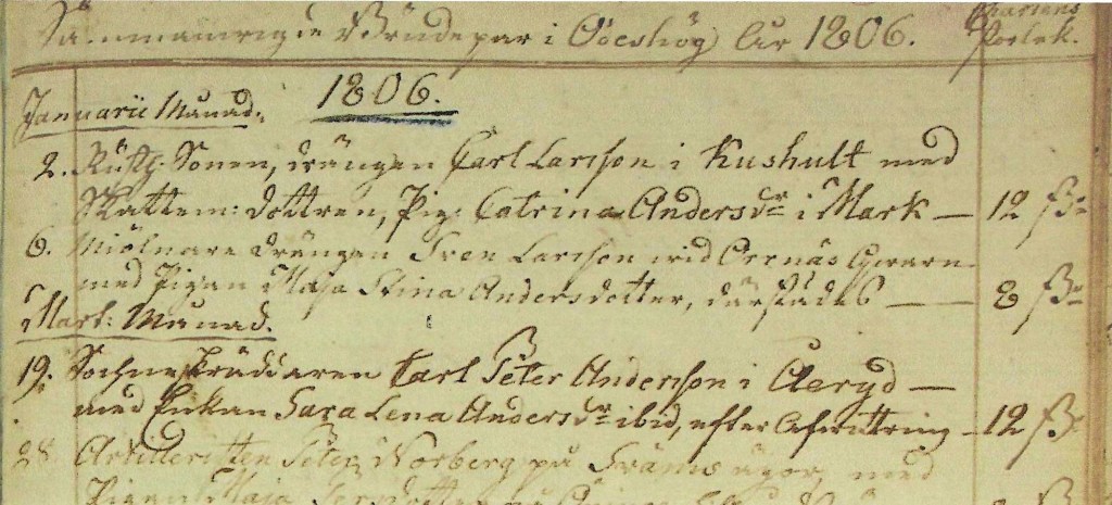 First Marriage – Catrina Andersdotter of Mark, Odeshög Parish